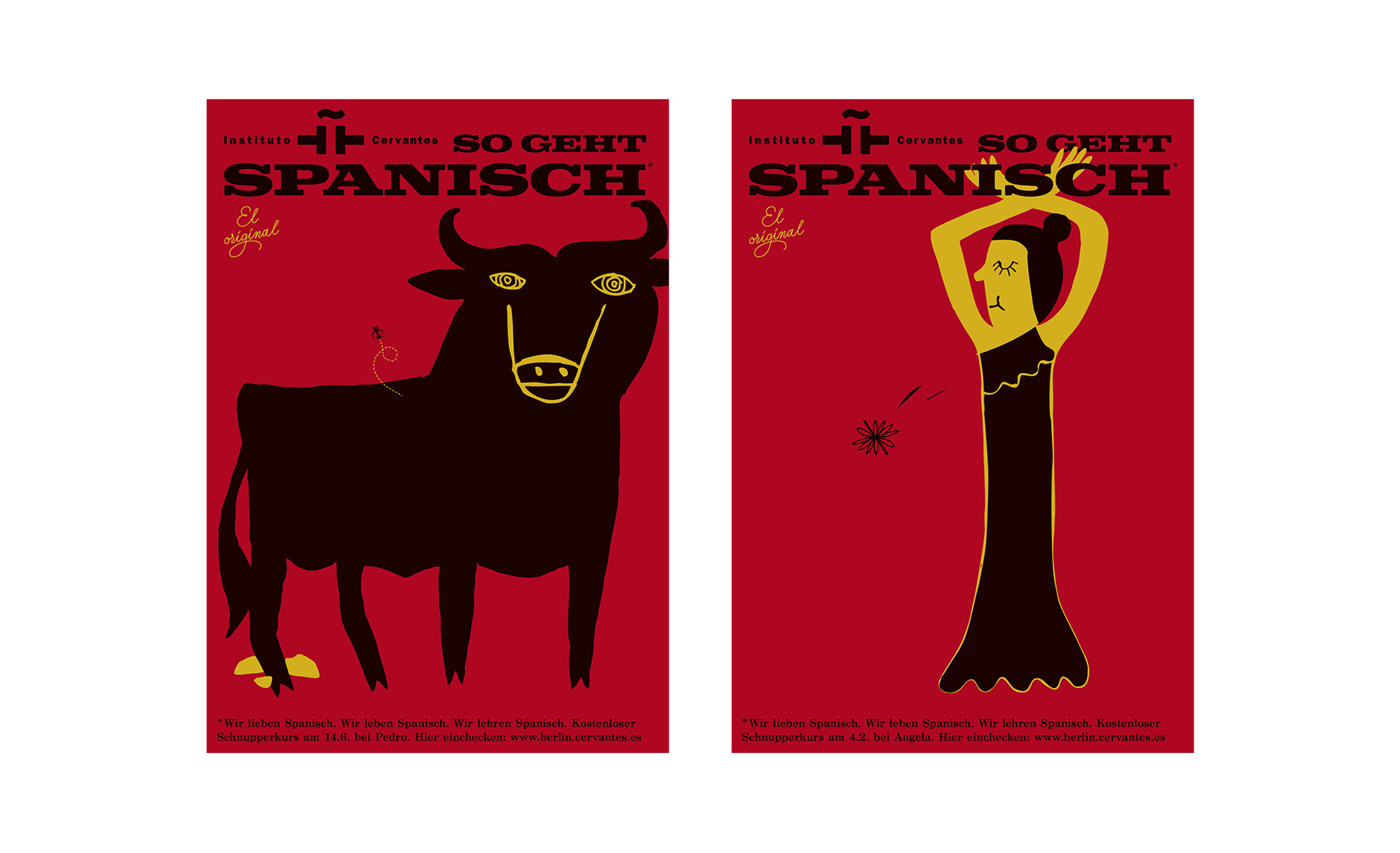 ¡HOLA AMIGOS! COME AND JOIN INSTITUTO CERVANTES FOR AN UNFORGETTABLE LANGUAGE EXPERIENCE. THE COURSES WILL TRANSPORT YOU TO THE VIBRANT WORLD OF SPANISH-SPEAKING COUNTRIES. YOU‘LL LEARN THE LANGUAGE, THE CULTURE AND THE DANCE MOVES. THE CAMPAIGN IS AS FUN AND COLORFUL AS THE LANGUAGE ITSELF, WITH COOL BLACK SILHOUETTES OF ICONIC SPANISH MOTIFS THAT WILL CATCH YOUR EYE AND LET YOU SIGN IN FOR A CLASS AT INSTITUTO CERVANTES BERLIN.
